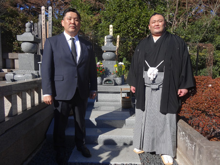 大相撲の元大関、朝乃山が3日、元大関朝潮で先代高砂親方の長岡末弘さんの墓参りをした。高砂親方や部屋の力士らと初めて東京都内の墓を訪れ、「けがのないように、天国から見守ってください」と手を合わせた。 【時事通信社】